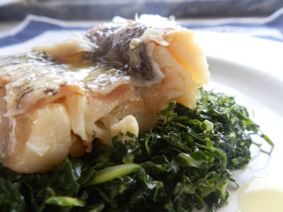 O bacalhau fica no ponto, e lasca mesmo bem. A couve tem aquele sabor amargo bem característico, que eu adoro.